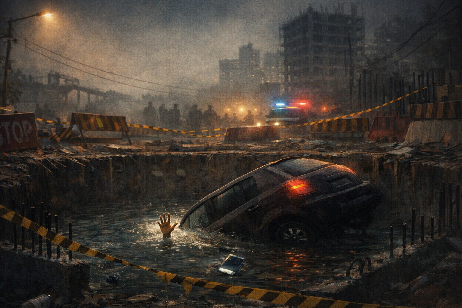 A trench, a pit, an unfinished basement, a mouth that had been left open in the dark as if the city itself had decided to yawn at passing traffic. My car did what machines do. It obeyed physics. It broke its boundary. It fell. The world turned vertical, then liquid. Water rushed in with the impatience of something that has waited too long to be acknowledged. In Sector 150, Greater Noida, a young professional died the way no modern city should allow: swallowed by a water filled construction pit, in an incident that has triggered investigations and warrants and anger, the usual choreography that arrives after a life has already left.